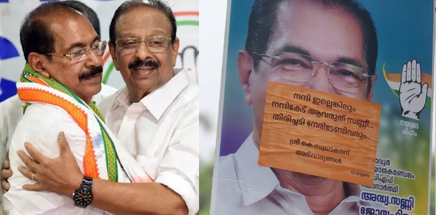 ‘നന്ദി കാണിച്ചില്ലെങ്കിലും നന്ദി കേട് ആവരുത് സണ്ണി’; സണ്ണി ജോസഫിന്റെ ഫ്ലെക്സിൽ സുധാകരൻ അനുകൂല പോസ്റ്റർ